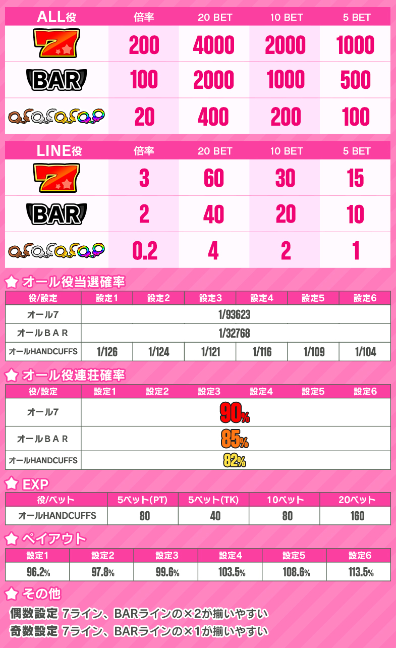 8ラインスロット「常夏パラダイス-ポリス編-」はMAXベット専用機です(MAXベットはバトルエリアの場合5ポイントのみとなります。トレジャーエリアの場合は5枚/10枚/20枚の3種類の台からお選び頂けます)。