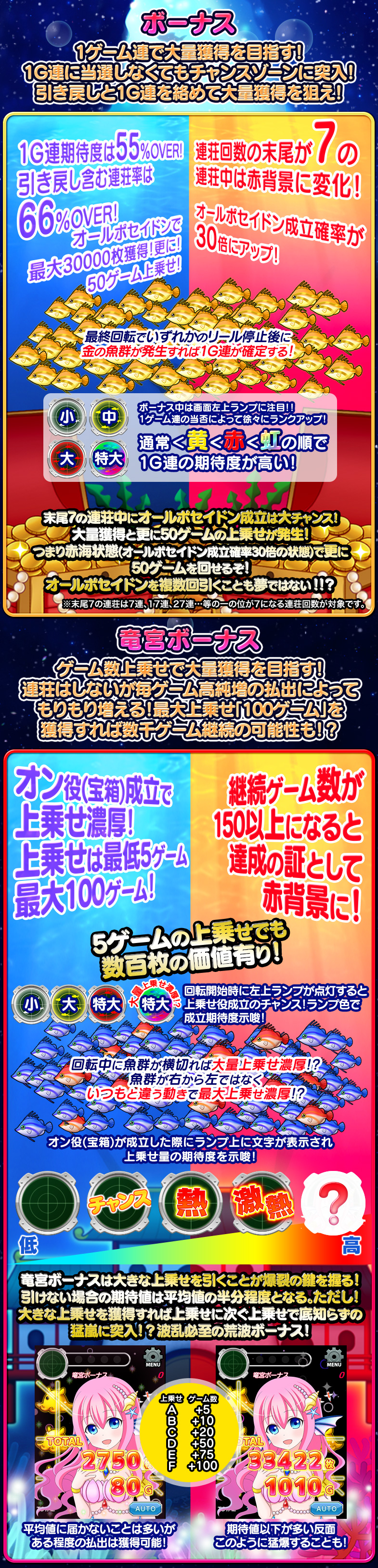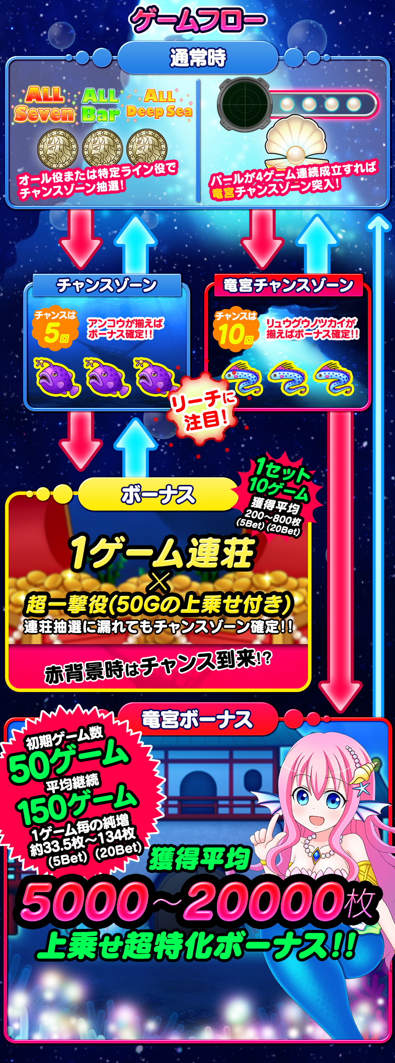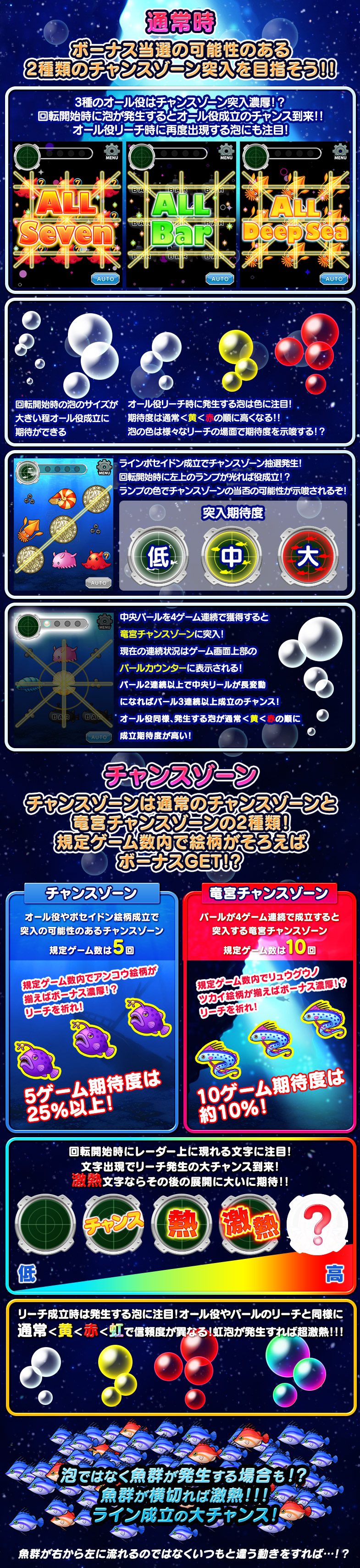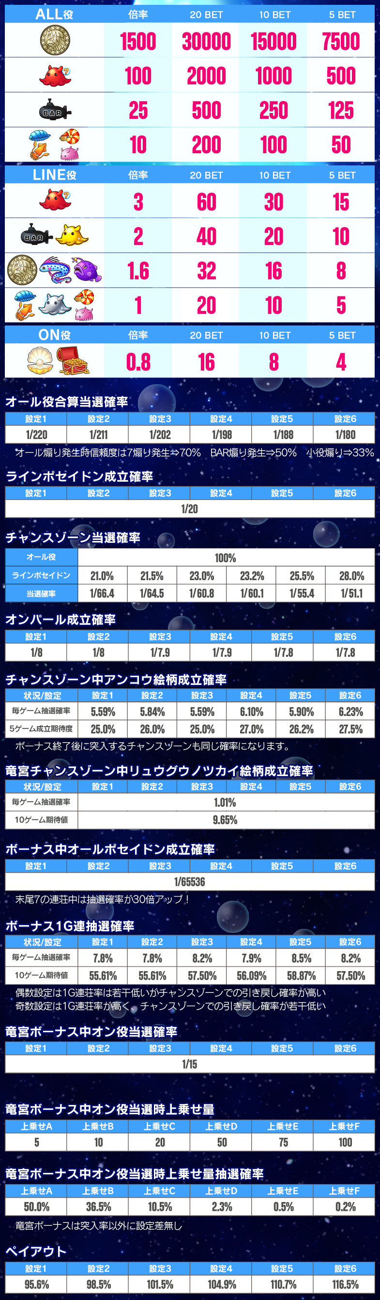 8ラインスロット「深海伝説」はMAXベット専用機です(MAXベットはバトルエリアの場合5ポイントのみとなります。トレジャーエリアの場合は5枚/10枚/20枚の3種類の台からお選び頂けます)。
